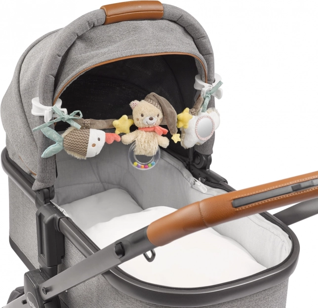 Ta verižica za voziček z motivi zvezdic in oblačkov je idealna za zabavo in razvoj otroka med sprehodi. Z dvema enostavnima sponkama jo hitro pritrdite na voziček, posteljico ali sedež. Dolžina 45 cm zagotavlja doseg do posameznih elementov, kar motivira otroka k raziskovanju in izboljšuje motoriko.