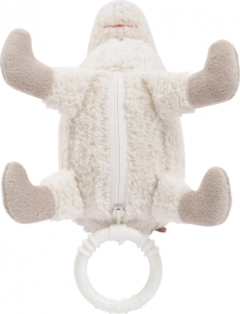 Plišasta lama z glasbenim mehanizmom, ki se sproži z vlečenjem za obroček. Mehanizem je mogoče odstraniti, igrača ima zadrgo. Prijetne umirjene barve in mehak material vabijo k crkljanju in pomirjajo otroka. Z dvema paščkoma lahko igračo hitro pritrdite na voziček, otroške sedeže in otroško posteljico.