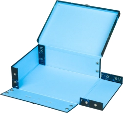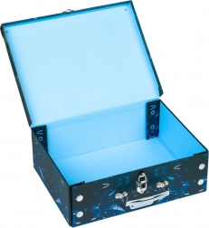 Odličen za šolarje, ta zložljivi kovček je izdelan iz trdega plastificiranega papirja s kovinskimi pritrdilnimi deli za dolgo življenjsko dobo. Edinstveni pritiskači omogočajo preprosto zlaganje in razstavljanje, kar zagotavlja, da bo kovček vedno v najboljši formi. Kovinski ročaj in klasična zaponka nudita udobno nošenje in varno zapiranje.
