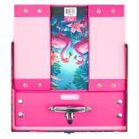 Ta kovček je idealen dodatek za vsakega šolarja, ki želi izstopati. Izdelan je iz trdnega laminiranega papirja in opremljen z okovanimi vogali, zato ponuja ne le vzdržljivost, temveč tudi slogoven videz.