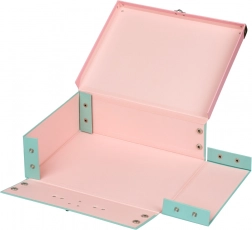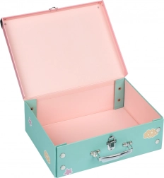 Kovček ima kovinski ročaj in se zapira s klasično zaponko. Edinstven sistem pritiskačev omogoča enostavno zlaganje in razstavljanje, kar olajša shranjevanje, ko ni v uporabi. Idealen za otroke in potovanja, saj zagotavlja varno in zabavno prenašanje njihovih najljubših igrač ali šolskih potrebščin.