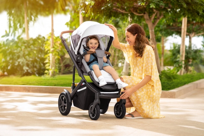 Uživajte v poletju na polno! Z ekstra široko strehico Stay Cool, ki jo je mogoče dodatno poljubno razširiti, oster poletni sončni sij za vašega otroka ne predstavlja nobene težave. Dovršen sistem prezračevalnih odprtin zagotavlja optimalno kroženje zraka, zaradi česar se temperatura v notranjosti vozička ne zvišuje niti v vročih poletnih dneh. Del strehice je tudi vgrajena mreža proti mrčesu, ki otroka ščiti pred neželenimi obiskovalci.