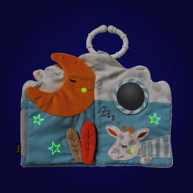 Vključeni so svetleči elementi, ki pomagajo otroku premagati strah pred temo. S praktično zanko lahko knjižico pritrdite na voziček, avtosedež ali posteljico.