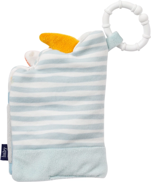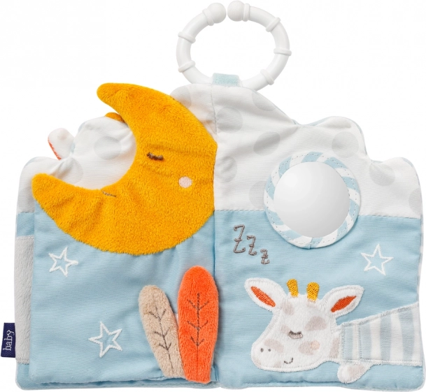 Knjiga iz mehkega in prijetnega velurja kar vabi otroke k odkrivanju in razvoju spretnosti pri najmlajših. Šeststranska tekstilna knjiga je prijetna na dotik in še posebej pritegne pozornost zaradi barvitih motivov. V notranjosti najdete piskajočo igračo, šumeči papir, ogledalce in sličice iz raznobarvnih tkanin.