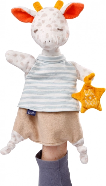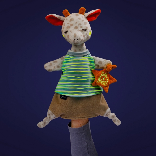 Crkljiva plišasta igrača podnevi, zvečer pa pripovedovalka pravljic in varuhinja mirnega spanca – to je ročna lutka žirafa iz kolekcije Gute Nacht. Prisrčna plišasta igrača iz mehkega velurja bo zvest spremljevalec vašega otroka. Uporabite jo lahko kot ročno lutko, s katero lahko otroka učite novih veščin, mu pred spanjem pripovedujete pravljice ali preprosto spodbujate njegovo domišljijo in fantazijo. Svetleči elementi pri otroku vzbudijo občutek varnosti in mu pomagajo lažje zaspati.