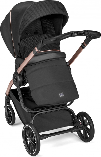 Košara vozička CAM Techno je zahvaljujoč kakovostnemu prezračevanju idealna za poletne mesece. V primeru slabega vremena pa odlično služita močna strehica in pregrinjalo z visokim senčenjem. To se zaradi hitrega dostopa do otroka zlahka odpne z zadrgami.