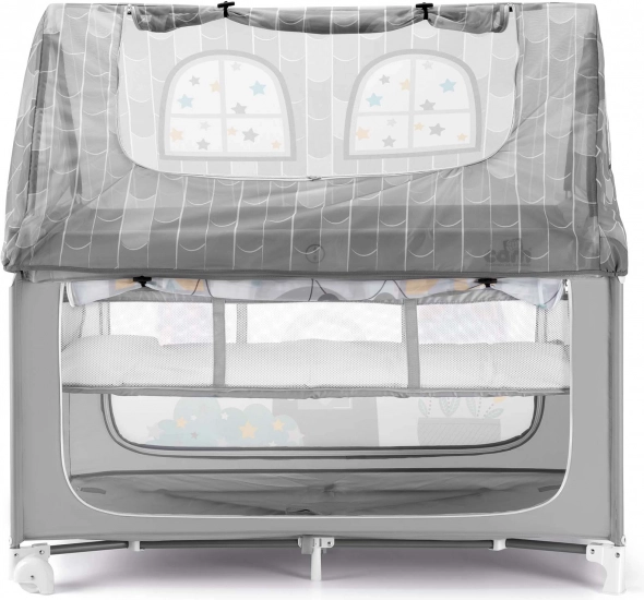 Otroška posteljica Daily Dolci Sogni izstopa po čvrsti kovinski konstrukciji in mehki elastični tkanini, kar jo naredi zelo praktično in varno. Obe stranici hiške sta opremljeni s prozornimi mrežastimi materiali, ki zagotavljajo dober pregled nad otrokom in enostaven dostop. Streha hiške je zložljiva, kar olajša rokovanje in dostop do otroka.