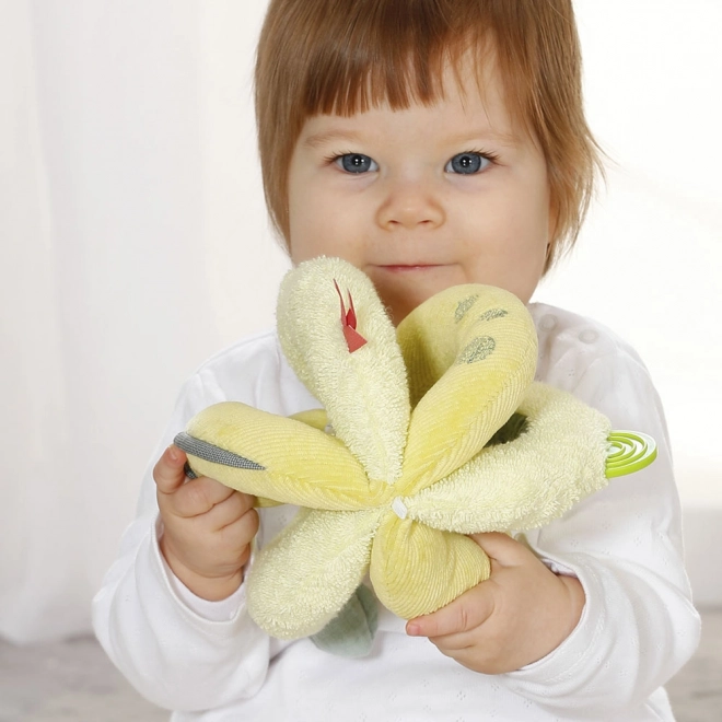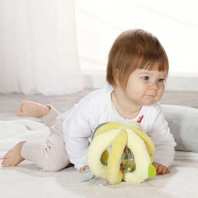 Mehka žoga je izdelana iz kakovostnega rebrastega žameta (manšestra) in frotirja, napolnjena je s plišem. Spodbuja naravno radovednost otrok ter naravnost vabi k kotaljenju, metanju in igri. Žogica je opremljena z ropotuljico, šumečim papirjem in piskačem. Med igro podpira zdrav razvoj motorike, koordinacije, čutov in domišljije. Zaradi praktične velikosti jo je mogoče zlahka prenašati, prav tako se prilega v voziček, avtosedež in otroško posteljico.