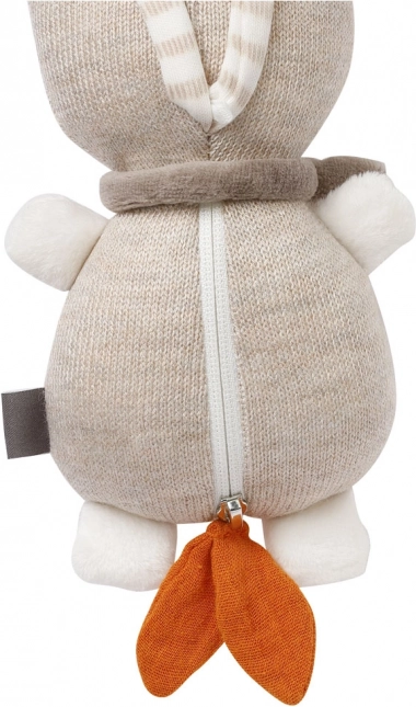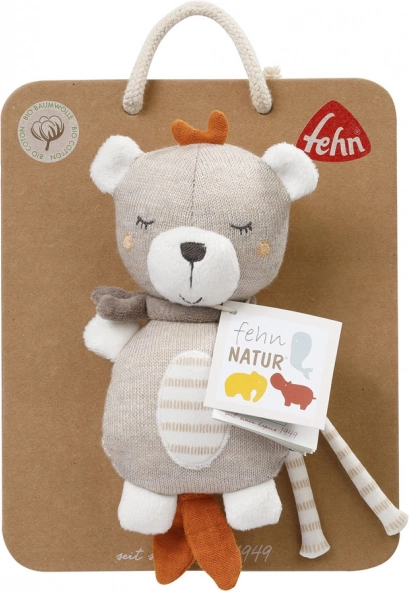 Ljubek, mehak plišasti medvedek je izdelan iz certificiranega organskega bombaža. Znotraj plišaste igrače je vlečni mehanizem, ki po potegu predvaja uspavanko s prijetno glasnostjo. Dva praktična trakova omogočata pritrditev igrače na voziček, posteljico ali avtosedež in tako preprečujeta izgubo igrače.