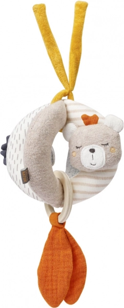 Ljubek balonček za obešanje je izdelan iz 100 % organskega bombaža. Zlahka ga je prijeti, spodbuja naravno radovednost in fino motoriko pri malčkih. Del žogice sta tudi ropotuljica in lesen obroček za spodbujanje koordinacije. Zaradi praktične velikosti in obešalnih trakov lahko balonček preprosto pritrdite na posteljico, voziček ali avtosedež, tako da ga ima otrok vedno pri sebi.