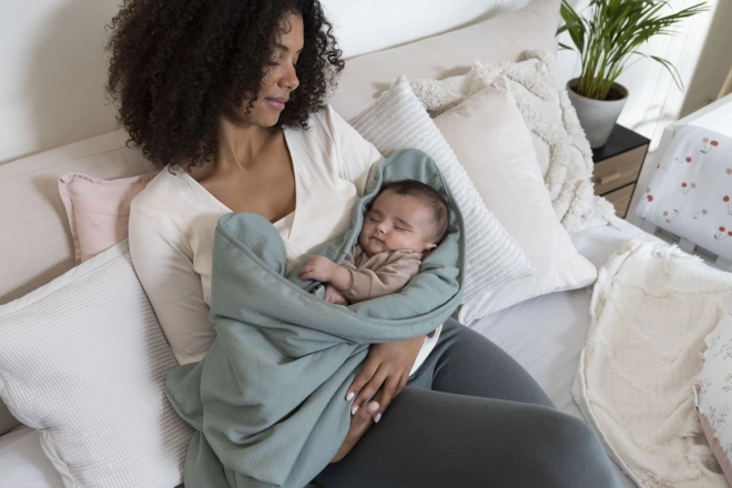 Zelo mehka odeja, idealna za zavijanje dojenčka doma ali med sprehodi na prostem.