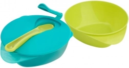 Pri učenju samostojnega hranjenja lahko uporabite čarobno podlogo Magic Mat, ki skledico varno pritrdi na mizo. Ta podloga se prodaja ločeno. Primerno za mikrovalovno pečico, pomivalni stroj in zamrzovalnik. Ne vsebuje bisfenola A (BPA), kar zagotavlja varnost za otroke od 6 mesecev starosti.