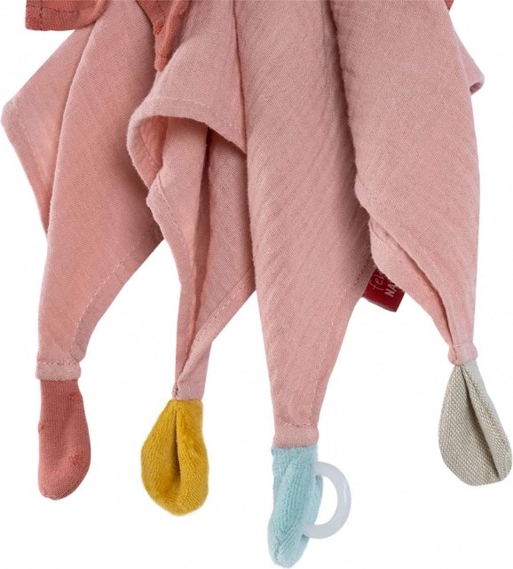 Ta ninica vključuje številne prijemalne elemente in mehke materiale, ki prispevajo k razvoju tipnih čutov dojenčka. Praktičen obroček za dudo prepreči izgubo dudo med igro ali spanjem.