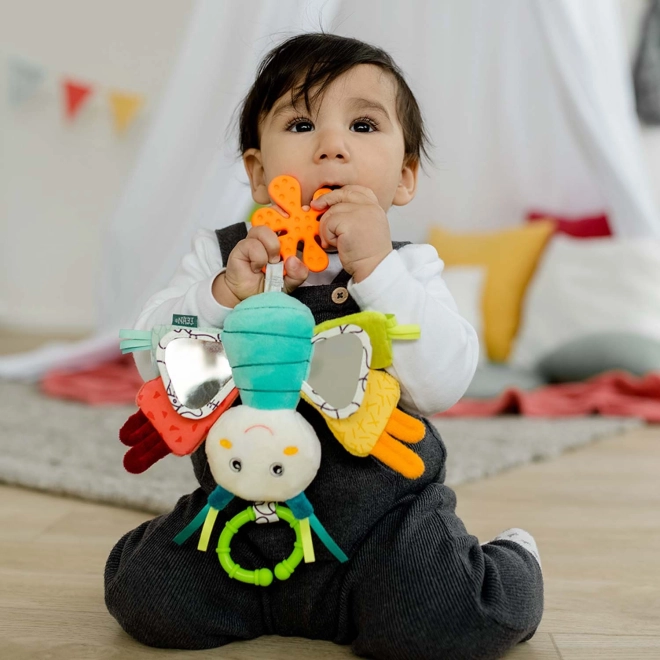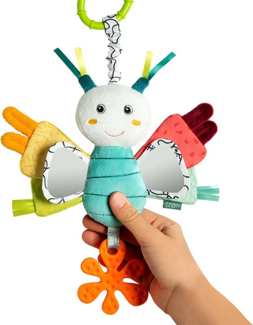 Igračo je mogoče s praktičnim C-obročkom pritrditi na voziček, otroški avtosedež ali posteljico.