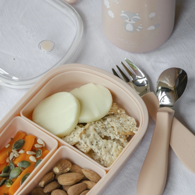 Silikonski jedilni komplet za otroke z motivom sove, 8 delov, bež