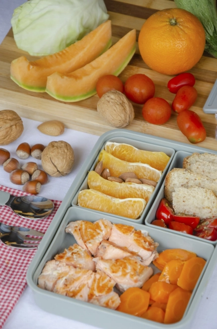 Visoko modularna rešitev, idealna za shranjevanje in prenašanje kosil, malic, sadja in zelenjave. Notranji vložek je sestavljen iz 3 predelkov, ki jih je mogoče posamezno odstraniti. Pokrov ima tesnilo proti iztekanju tekočin.