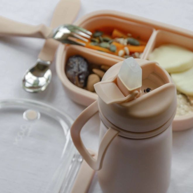 Silikonski jedilni komplet za otroke z motivom sove, 8 delov, bež