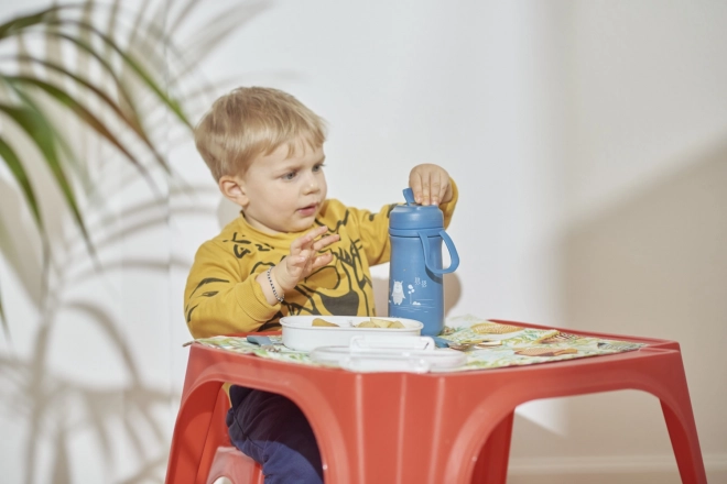 Silikonski jedilni komplet za otroke z motivom veverice, 9 delov, temno modra