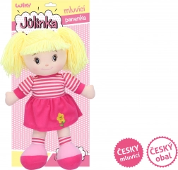 Odkrijte čarobnost govorljive Punčke Julinke, ki zna povedati štiri znane češke pesmice, ko ji pritisnete trebušček. S svojim mehkim telesom in ljubkim obrazom bo hitro osvojila srce vaše deklice.