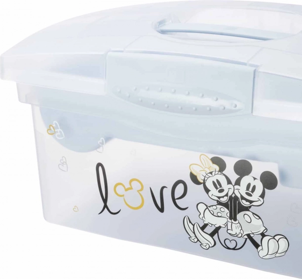Praktična potovalna škatla z vloženim predelkom za majhne dele in udobnim ročajem za enostavno prenašanje. Idealna za igrače, zdravila, kozmetiko in drobnarije. Trpežen PP plastika, enostavno vzdrževanje in stajliš motiv MICKEY za pregledno in lepo shranjevanje.