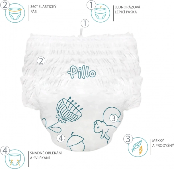 Pleničke so izjemno mehke in zračne, zato lahko koža diha ves dan. Super raztegljiv pas se popolno prilagodi gibanju otroka, kar boste cenili pri igri in med spanjem. Zaradi hlačnega kroja je previjanje hitro in enostavno – idealno za aktivne otroke.