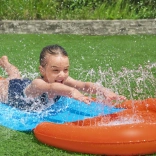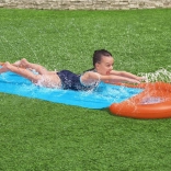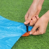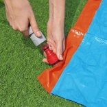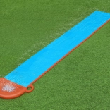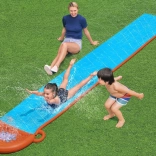 Sama namestitev je enostavna. Dovolj je, da tobogan razgrnete na travo, priključite cev in uživate ure vodne zabave na svežem zraku.