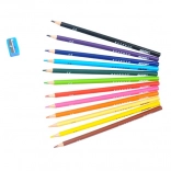 Trikotne barvice MFP ESSENSO so idealne za šolarje in male ustvarjalce. Ergonomska trikotna oblika podpira pravilen oprijem in udobno risanje. Vsaka izmed 12 barvic prijetno diši, kar risanje naredi še prijetnejšo izkušnjo. Barvice imajo čvrst, trpežen minec, ki se manj lomi.