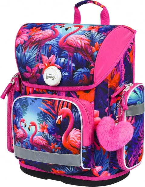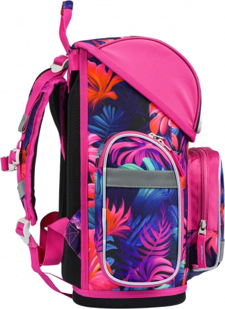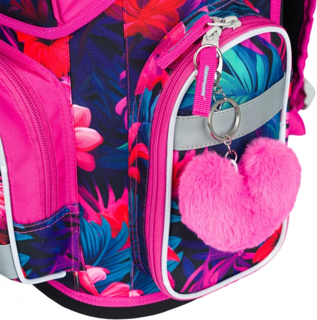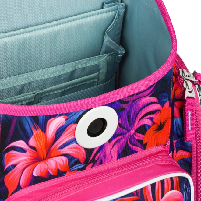 Slogovna in funkcionalna šolska aktovka z motivom flamingov je zasnovana za otroke od 1. razreda OŠ. S sistemom ERGO ADJUSTABLE SYSTEM zlahka nastavite višino in položaj trakov, da se aktovka popolno prilega hrbtu. Ergonomsko oblikovan hrbtni del ter popolnoma nastavljivi ramenski, prsni in bočni kompresijski trakovi poskrbijo za udobje skozi ves šolski dan.