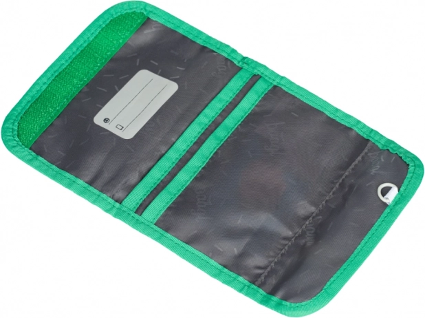 Denarnica ponuja več predelkov za bankovce in kartice ter praktičen žep z zadrgo za kovance. Zahvaljujoč vrvici za obešanje okoli vratu je otrok ne bo izgubil in jo bo imel vedno pri roki – idealno za izlete, krožke in turnirje.