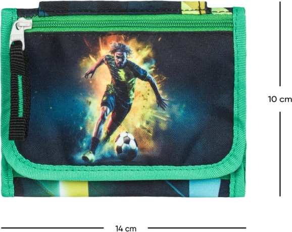 Ta trendovska denarnica BAAGL z nogometnim motivom je zasnovana za otroke in najstnike, ki želijo imeti svoje malenkosti pregledno in varno shranjene. Odporna zasnova prenese šolski vrvež in športne aktivnosti, medtem ko ježek omogoča hitro in preprosto zapiranje.