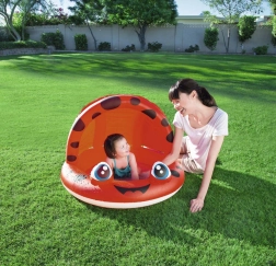 Izbirate lahko med dvema igrivima motivoma – žabico v zeleni in pikapolonico v rdeči barvi. Bazenček se zlahka napihne, je lahek, zavzame malo prostora in je popoln za teraso, balkon ali vrt. V pakiranju najdete tudi popravno krpico za hitro popravilo manjših poškodb.