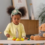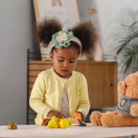 Sadje je zaradi skritih spojov mogoče večkrat razdeliti in spojiti – otroci varno vadijo natančnost in koordinacijo.