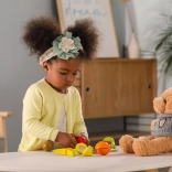 Zabaven in varen lesen komplet sadja za rezanje z desko in nožem spodbuja fino motoriko, koordinacijo oko–roka ter igro kuhanja. V paketu je 18 delov, vključno z desko in nožem, idealno za male kuharske mojstre od 18 mesecev naprej.