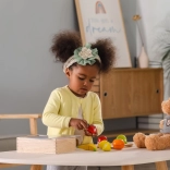 Celovit komplet z desko in nožem uči pravilnih gibov v kuhinji ter spodbuja domišljijo pri igri kuhanja.