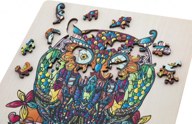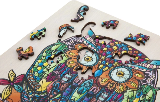 Lesena obrisna sestavljanka z motivom sove je zabavna igrača za otroke in odrasle. Vsebuje 133 različno oblikovanih kosov in podlago za lažje sestavljanje.