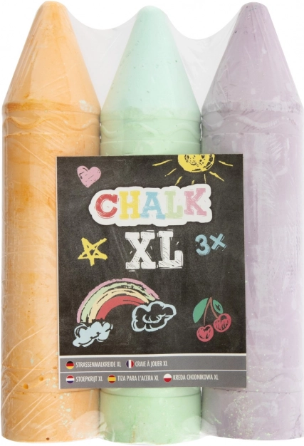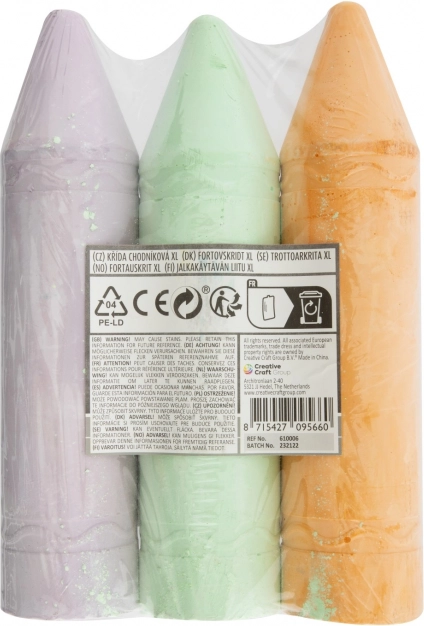 Obogatite svoje risalne aktivnosti s temi barvnimi kredami XL, ki so na voljo v dveh različicah - rumena, modra in roza ali oranžna, zelena in vijolična. Vsak set vsebuje tri krede, ki imajo optimalno dolžino 19 cm, kar olajša držanje pri risanju.
