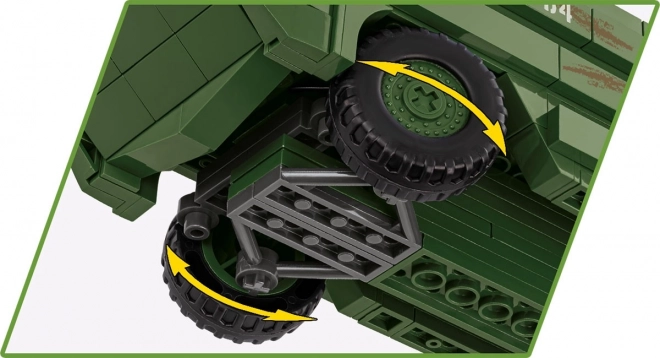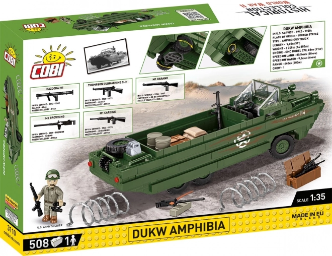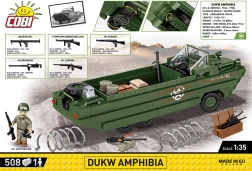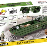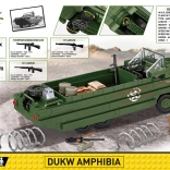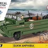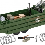 Gradbeni set Amfibija DUKW je zasnovan za ljubitelje zgodovine in vojaške tehnike. Model je izdelan v merilu 1:35 in ga krasi uradni logotip obeležitve 80. obletnice izkrcanja Zaveznikov v Normandiji. Prinaša realistične elemente, kot so vrtljiva kolesa, ter ameriškega vojaka z množico dodatkov, vključno z bazuko, puško Browning, Garand, Thomson in M1. V tovornem prostoru najdete zaboje, sode, kanistre in rezervno kolo.