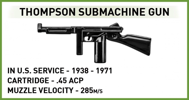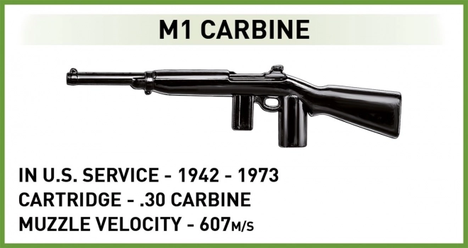 V kompletu je priložena figurica ameriškega vojaka skupaj z bogato opremo, kot so bazuka, puška, daljnogled in drugo. Popolno za ljubitelje vojaške zgodovine.