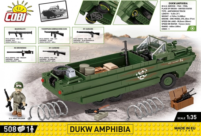 Sestavljen model amfibije DUKW ponuja podrobne lastnosti, kot so vrtljiva kolesa, realistično zasnovo pa so izdelali ob 80. obletnici izkrcanja v Normandiji.