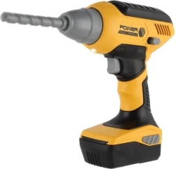 Ta otroški akumulatorski vrtalnik v ikonični rumeno-črni kombinaciji zvesto posnema pravo orodje in je odličen spremljevalec za male pomočnike v delavnici in doma. Ob pritisku na sprožilec se nastavek zavrti, vrtalnik pa oddaja pristne zvoke vrtanja, ki še okrepijo doživetje igre.