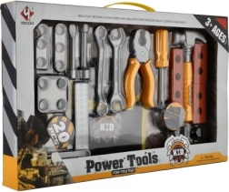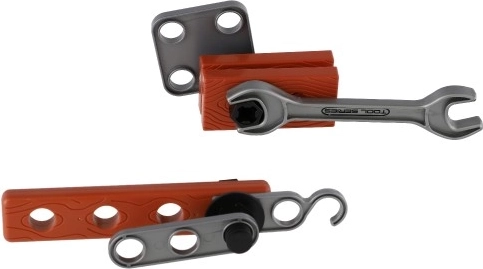 Kladivo, klešče, izvijač, ključi in pritrdilni material – vse potrebno za realistično igro popravil in razvoj tehničnega razmišljanja.