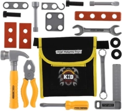 Odkrijte zabavno in varno igro malega mojstra s tem popolnim otroškim kompletom orodja s pasom. Vsebuje vse, kar mali mojstri potrebujejo: kladivo, klešče, izvijač, ključe, kotnik, vijake, matice in podložke. Praktičen tekstilen pas za orodje poskrbi, da je vse pri roki, ter spodbuja razvoj fine motorike, domišljije in samostojnosti.
