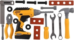 Vključuje vrtalnik, kladivo, izvijač, klešče, ključ in vijake. Idealno za razvoj motoričnih sposobnosti in ustvarjalnega razmišljanja.