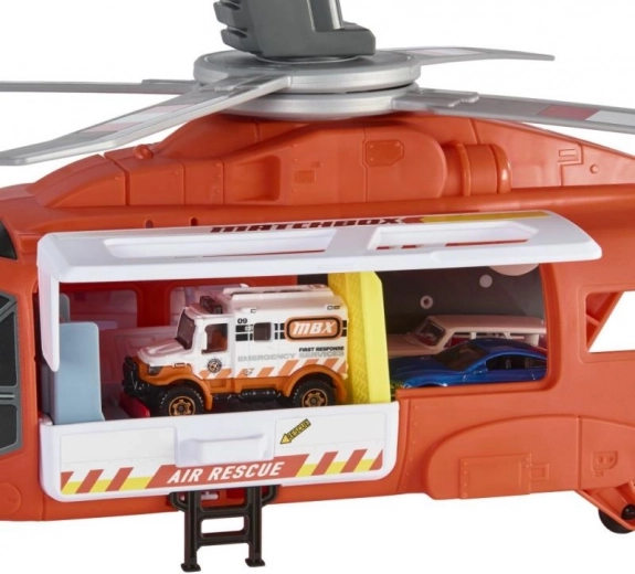- Velik reševalni helikopter Matchbox je pripravljen na reševalne misije.