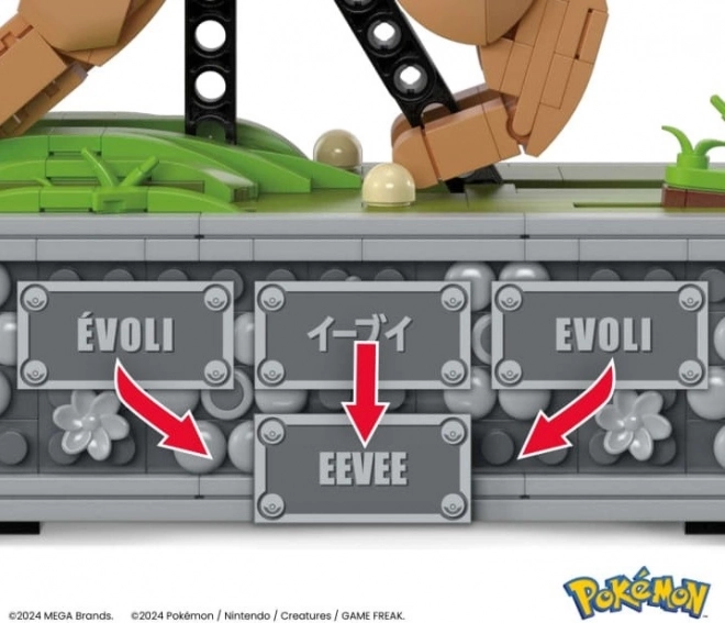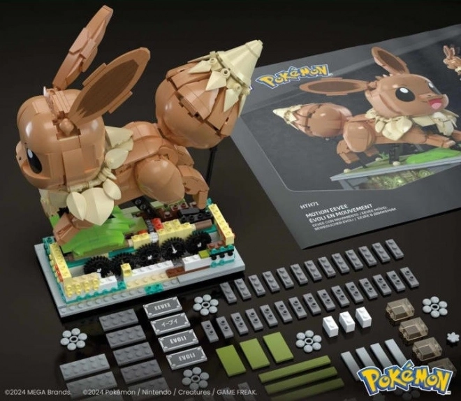 S tem konstrukcijskim kompletom Mega Pokémon Motion Eevee lahko obogatite svojo zbirko. Sestavite model in zavrtite ročico, da si ogledate gibanje Eeveeja, vključno z majanjem repa in glave. Stojalo vključuje zamenljive tablice v različnih jezikih.