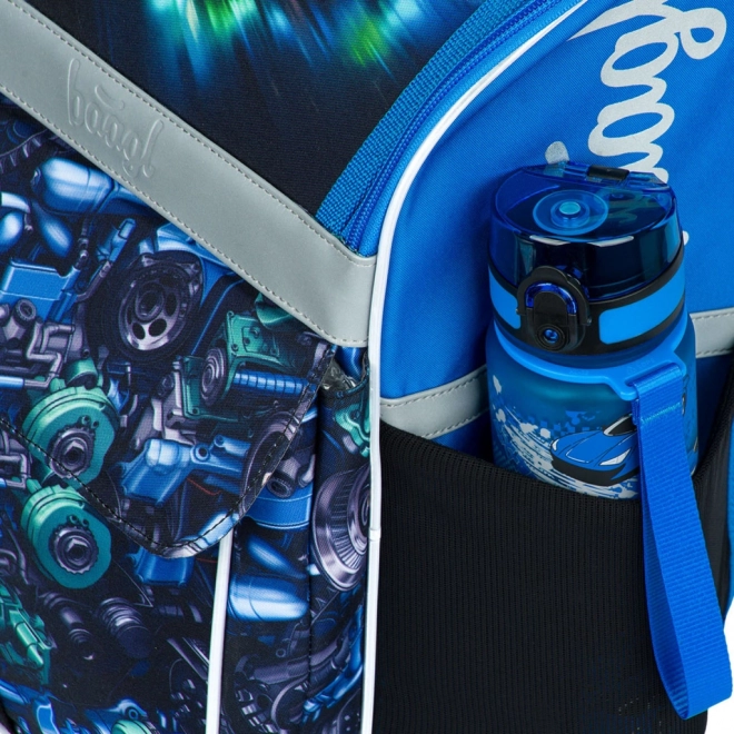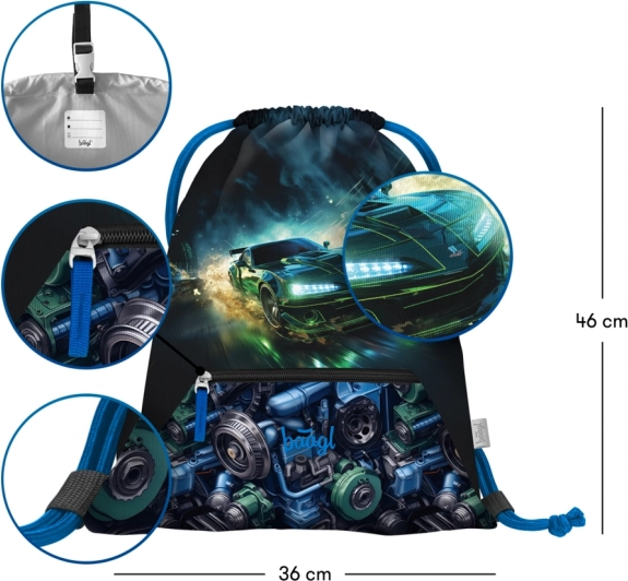 Praktičen in stilski set z motivom dirkalnega avtomobila olajša vsak šolski dan. Ergonomsko oblikovana šolska torba s pomičnim hrbtnim sistemom ERGO ADJUSTABLE SYSTEM se natančno prilagodi otrokovi višini, nastavljivi ramenski, prsni in bočni kompresijski trakovi pa zagotavljajo udobje in pravilno razporeditev bremena.