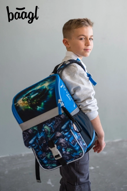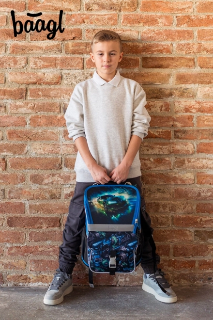 Šolski set Baagl Zippy dirkalni avto za prve šolske leta vključuje ergonomsko šolsko torbo z nastavljivim ERGO ADJUSTABLE SYSTEM, enonadstropno peresnico in vrečko z žepom. Torba ima preklopni sistem odpiranja, uporaben organizator, odsevne elemente in vodoodporen material za vsakodnevno zanesljivost.