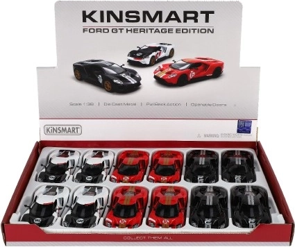 Model avtomobilčka Ford GT je izdelan v merilu 1:38 in je zvesta replika ikoničnega športnega avtomobila. S svojo edinstveno funkcijo povratnega vleka omogoča otrokom ali zbirateljem doživetje vznemirjenja hitrosti. Model ima odprta vrata, ki povečujejo interaktivnost in realizem igre. Zahvaljujoč podrobni izvedbi je idealen tako za otroške igre kot za razstavljanje.