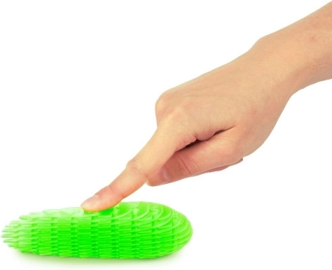 Igrača ima posebno teksturirano površino, ki spodbuja čute in zagotavlja edinstveno otipno izkušnjo.