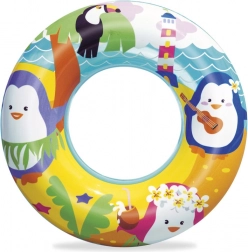 Obroč je izdelan iz vzdržljivega PVC, dobro drži obliko in zahvaljujoč povratnemu ventilu ne prihaja do neželenega uhajanja zraka. Nizka teža in kompaktne mere ga delajo idealno izbiro za bazen, plažo in jezero. Pakirano v praktični barviti embalaži – odlično tudi kot darilo.
